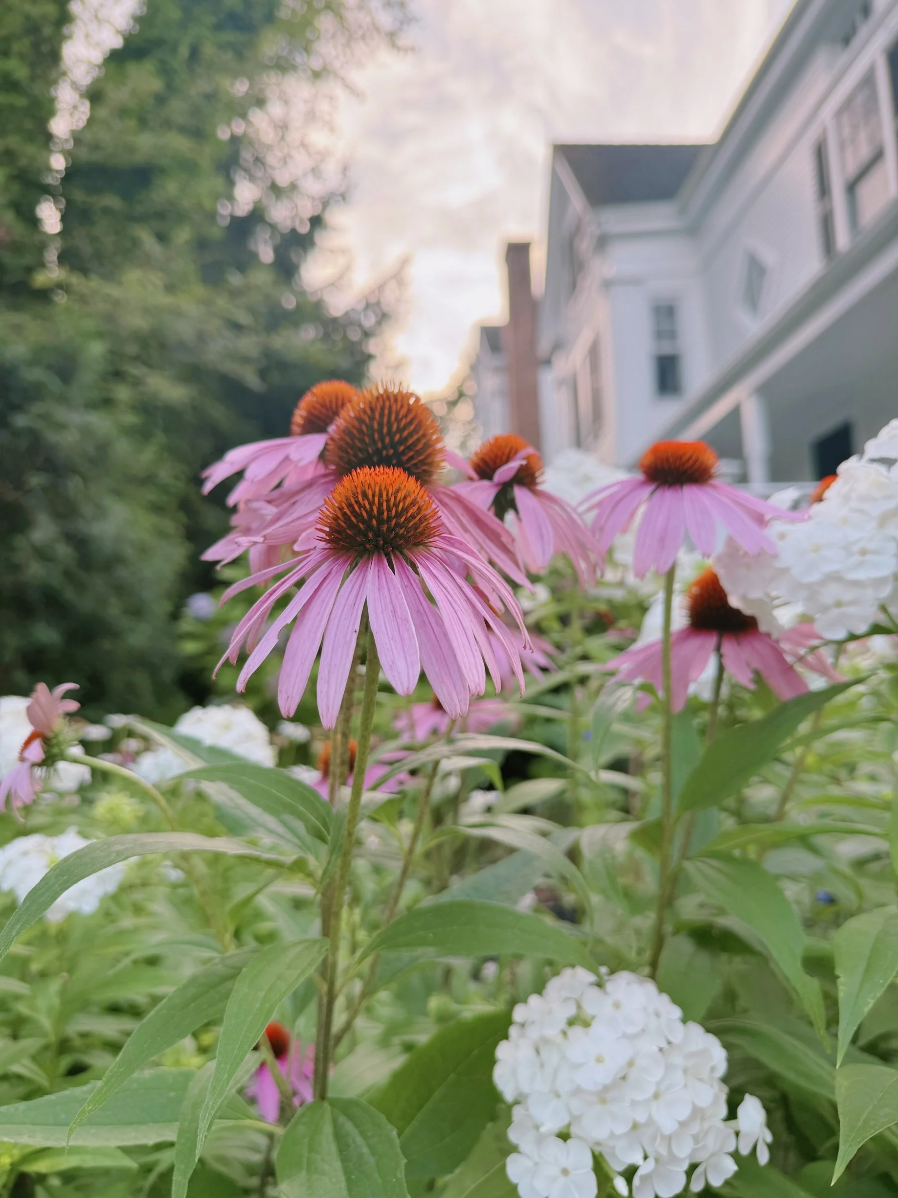 The air feels softer in vineyard haven, and even the flowers along the roadside seem to insist you pause long enough to notice them. One morning on a walk, I came across a stretch of blooms—wild and unbothered—woven between hand-painted signs declaring things like “We Support Immigrants.” It stopped me in my tracks. Beauty here wasn’t curated. It was lived.